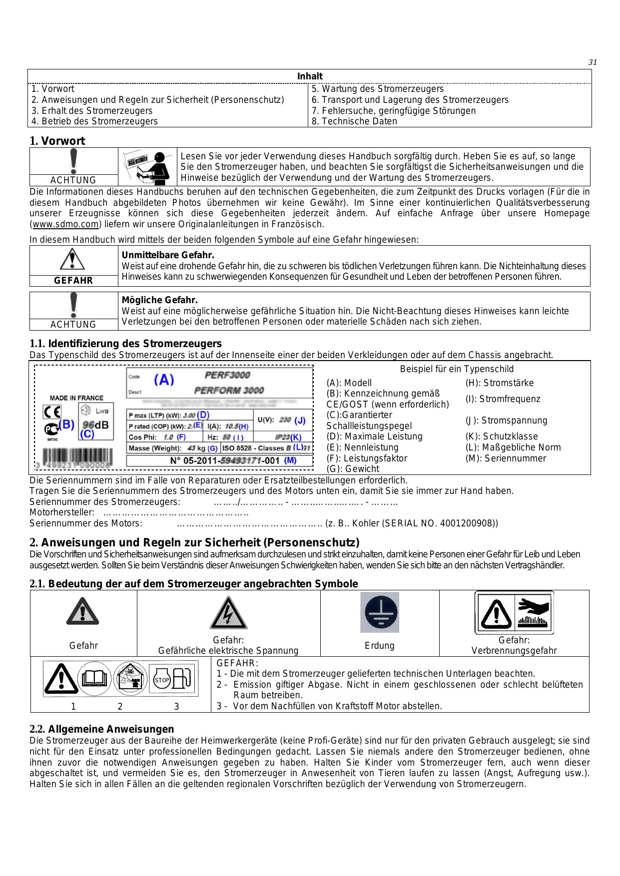 BEDIENUNGSANLEITUNG VARIO 2000I SDMO