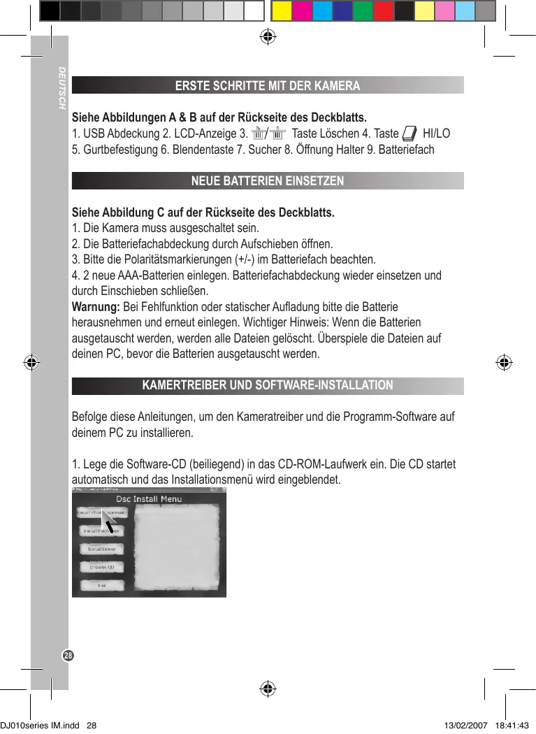 Drücke die Blendentaste [6], um ein Foto zu machen. Nach jeder Aufnahme horst du akustisches Signal. Die Anzahl der Bilder, die du noch speichern kannst, wird an der LCD-Anzeige eingeblendet. DJ010series IM.indd 29