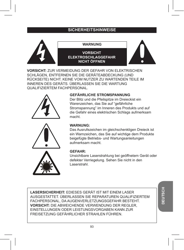 Les symboles de l’éclair et de la pointe de flèche dans un triangle permettent d’alerter l’utilisateur de la présence de ‘tension dangereuse’ non isolée à l’intérieur de l’appareil, ce qui constitue un risque d’électrocution. S