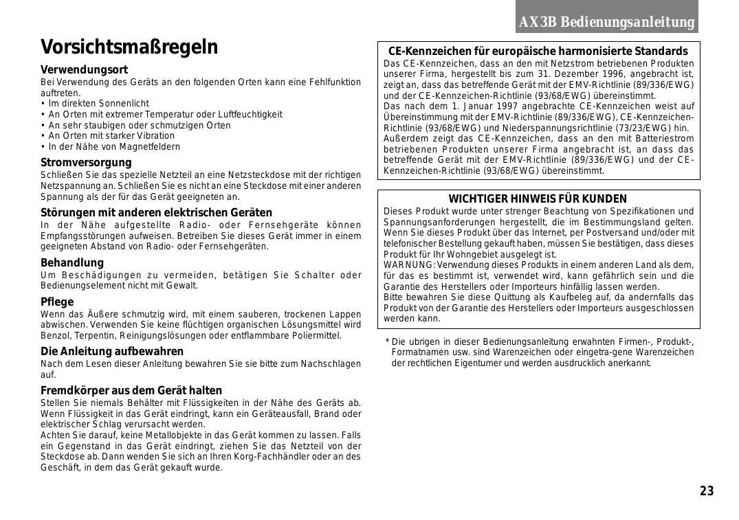 Finden Sie kostenlos die Bedienungsanleitung des Geräts AX3B KORG als PDF.