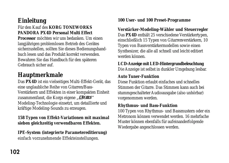 Finden Sie kostenlos die Bedienungsanleitung des Geräts PANDORA PX4D KORG als PDF.