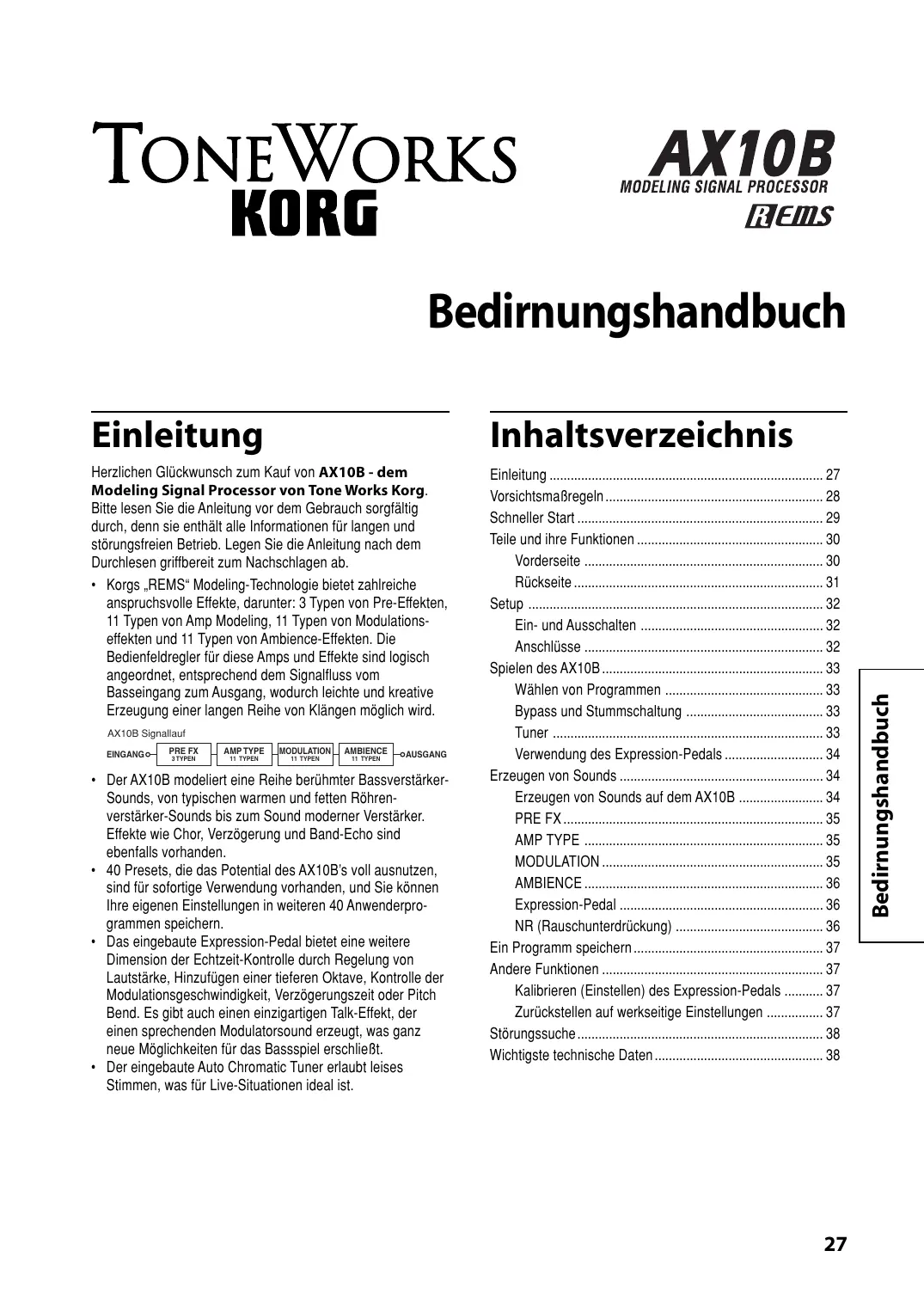 Herzlichen Glückwunsch zum Kauf von AX10B - dem Modeling Signal Processor von Tone Works Korg.