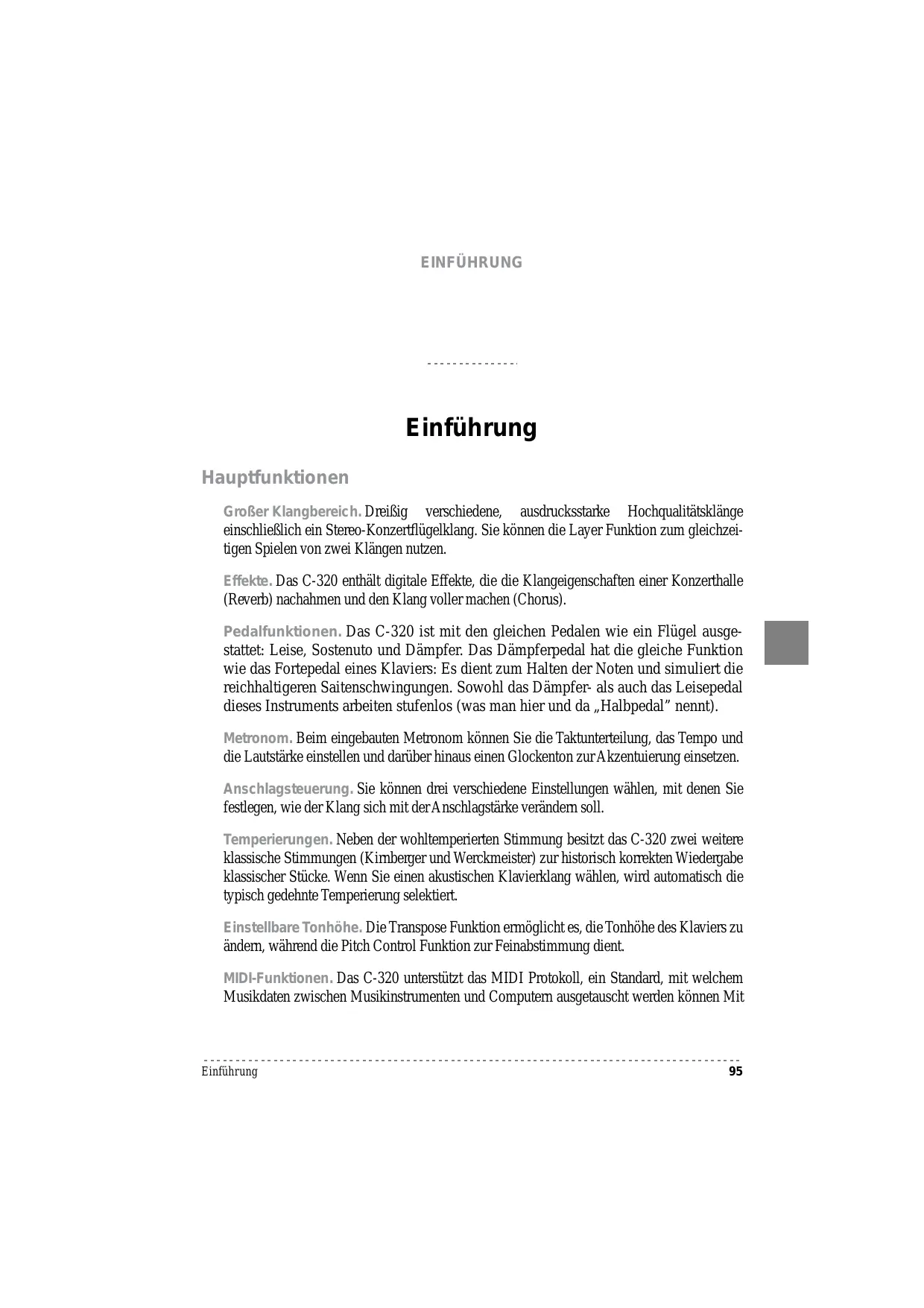 tempéraments classiques (Kirnberger et Werckmeister) pour une attentive reproduction historique de la musique classique. En sélectionnant un timbre de piano acoustique, le typique “Stretched Tuning” (cordes pincées) correspondant est automatiquement choisi.