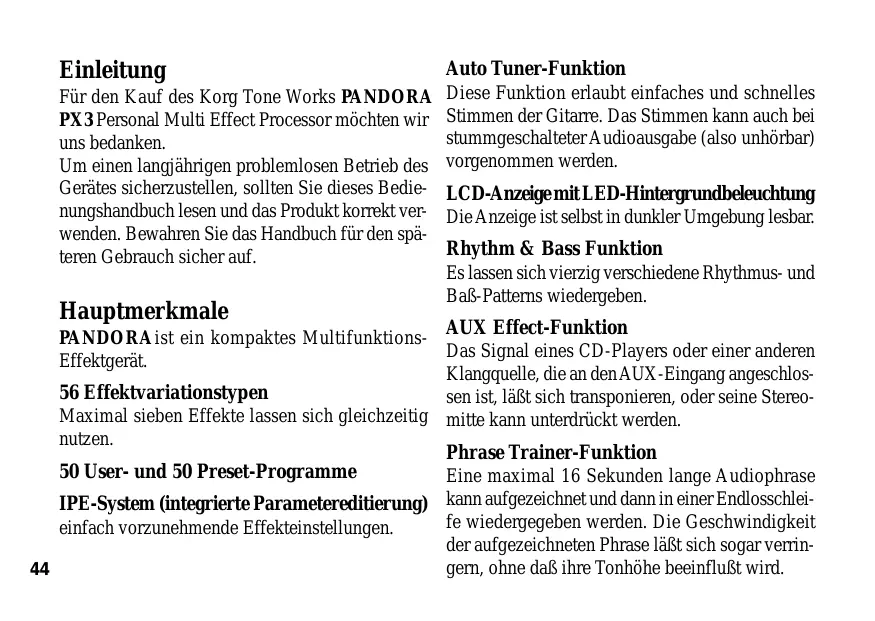 Finden Sie kostenlos die Bedienungsanleitung des Geräts PX3 KORG als PDF.
