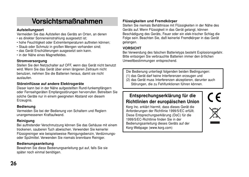 Korg Inc. déclare par la présente que le produit est conforme aux exigences de la directive 1999/ 5/CE. Vous pouvez consulter la Déclaration de conformité (DoC) à la directive 1999/5/CE dans le mode d’emploi de ce produit, disponible sur le site Internet de Korg (www.korg.com).