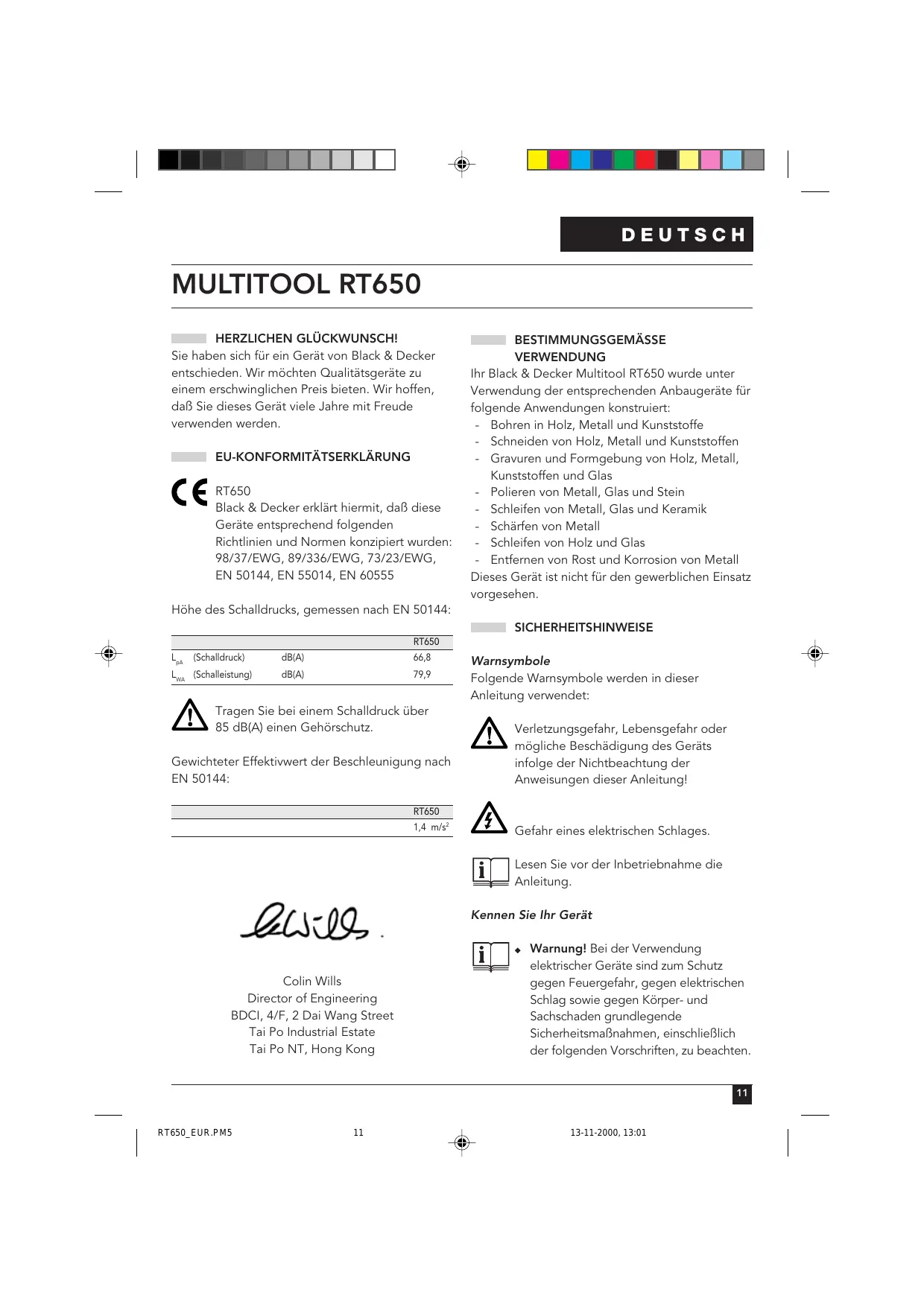 13-11-2000, 13:01 DEUTSCH MULTITOOL RT650 HERZLICHEN GLÜCKWUNSCH! Sie haben sich für ein Gerät von Black & Decker entschieden. Wir möchten Qualitätsgeräte zu einem erschwinglichen Preis bieten. Wir hoffen, daß Sie dieses Gerät viele Jahre mit Freude verwenden werden.