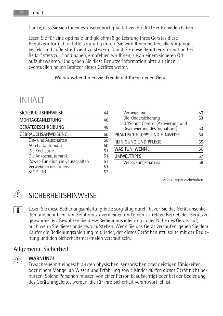 BEDIENUNGSANLEITUNG HK954400FB AEG