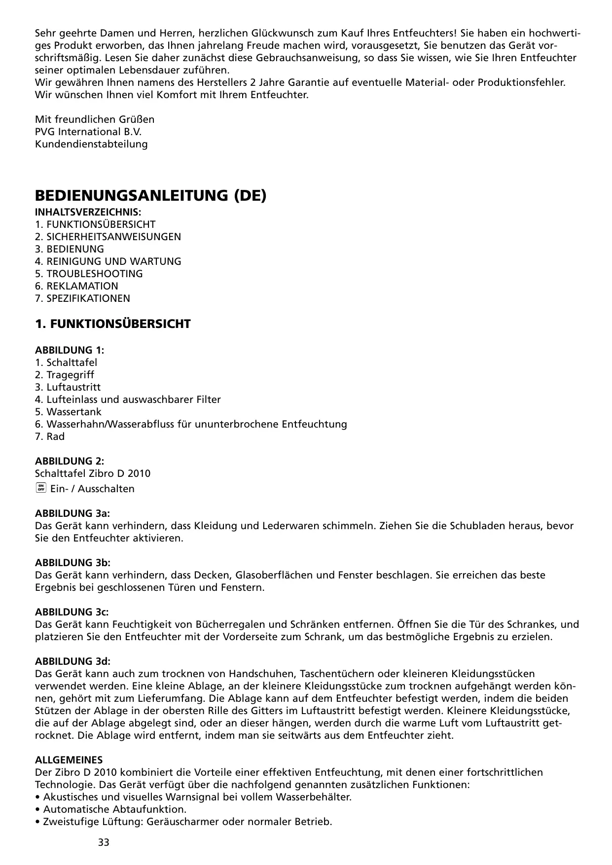 BEDIENUNGSANLEITUNG D2010 ZIBRO