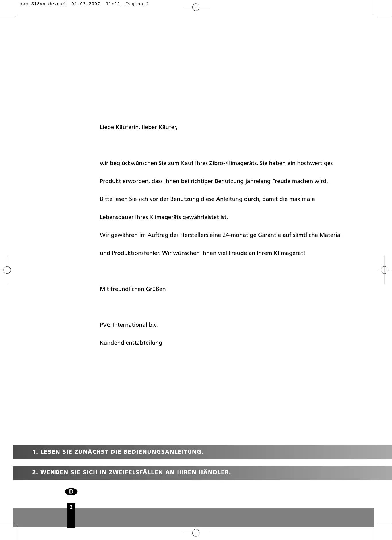 BEDIENUNGSANLEITUNG S1825 ZIBRO