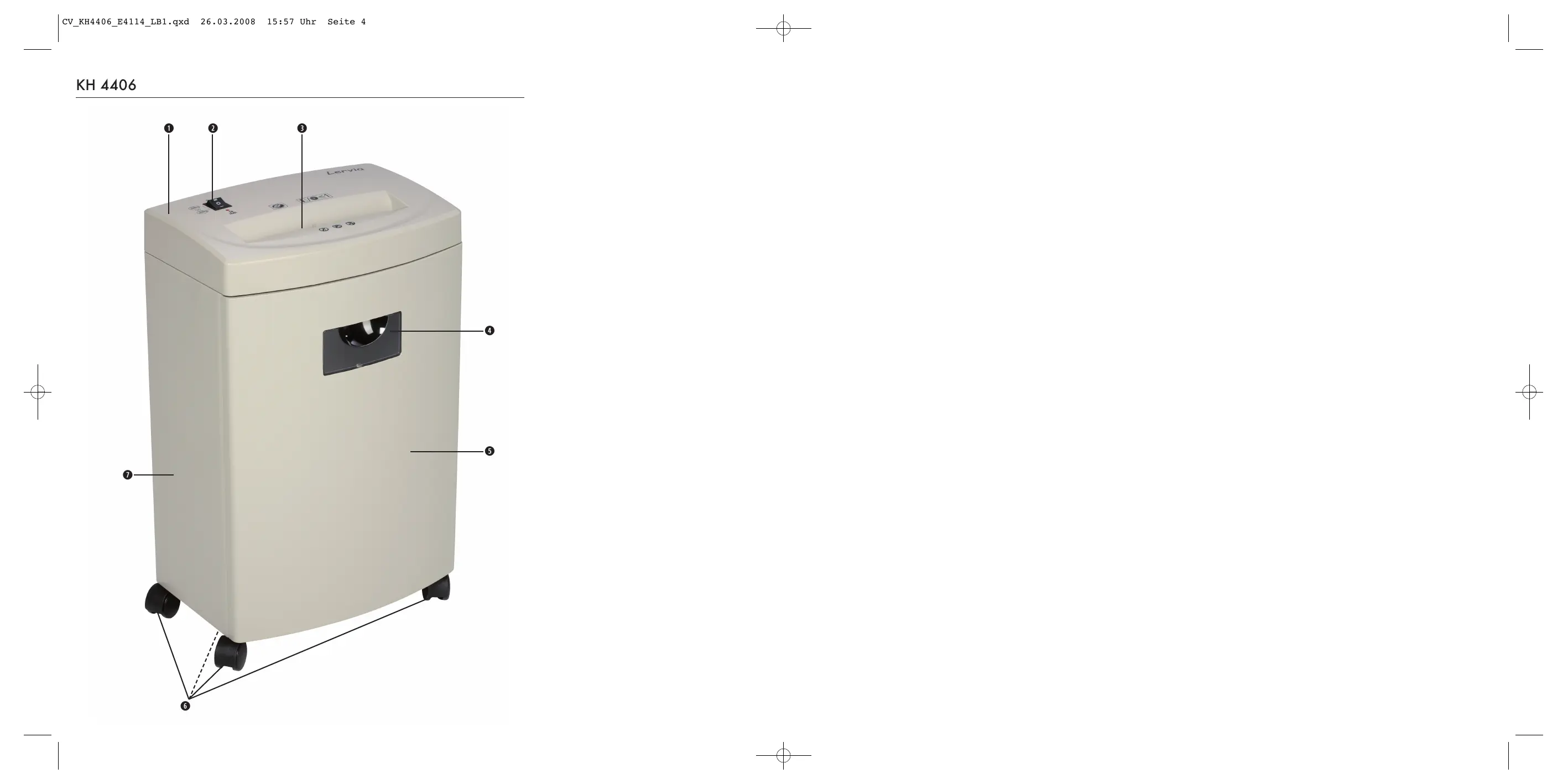 Aktenvernichter KH 4406 4 Rollen 4 Befestigungskappen Bedienungsanleitung