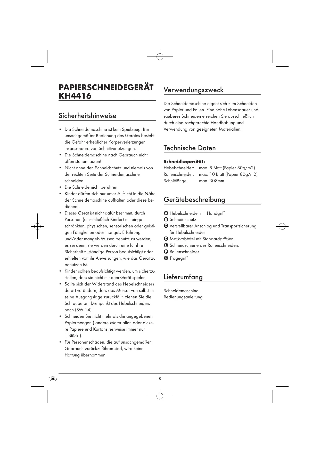 Finden Sie kostenlos die Bedienungsanleitung des Geräts KH 4416 LERVIA als PDF.