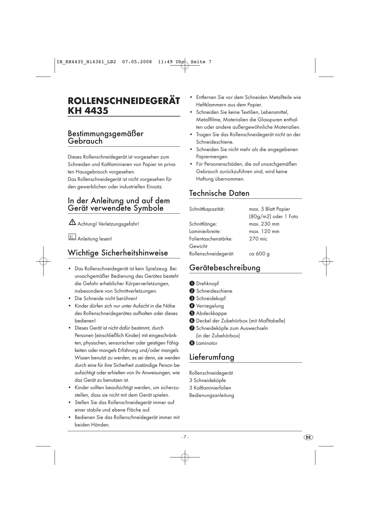 Finden Sie kostenlos die Bedienungsanleitung des Geräts KH 4435 LERVIA als PDF.