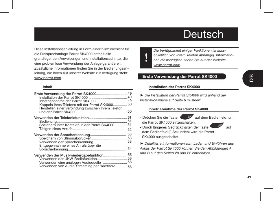 BEDIENUNGSANLEITUNG SK4000 PARROT