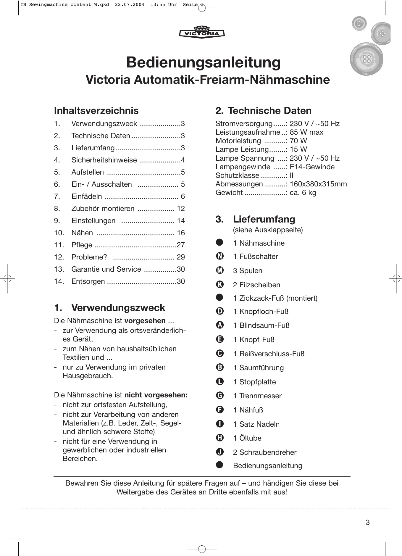 Bei einer Nähmaschine kann man sich wie mit jedem anderen Elektro- gerät verletzen und in Lebensgefahr geraten. Um dies zu vermeiden und um sicher zu arbeiten: