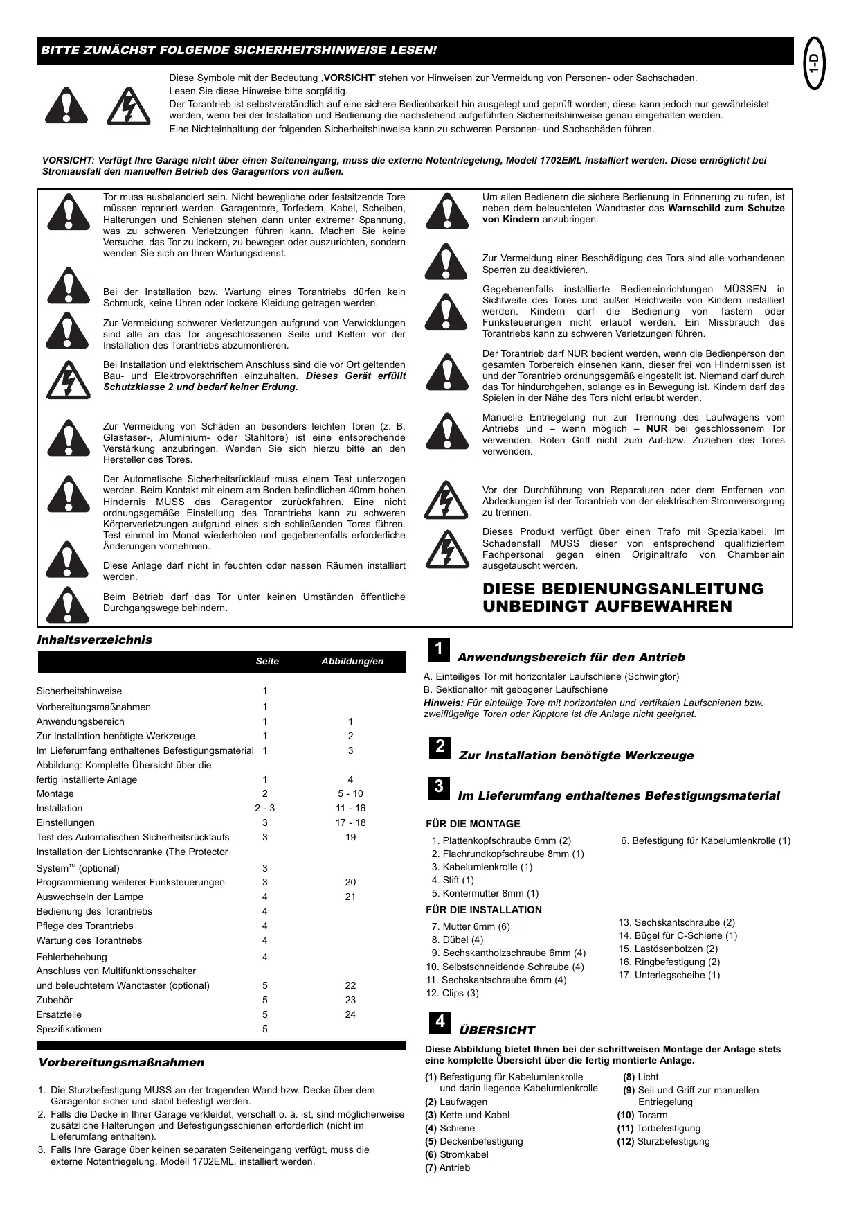 BEDIENUNGSANLEITUNG MOTORLIFT500 CHAMBERLAIN