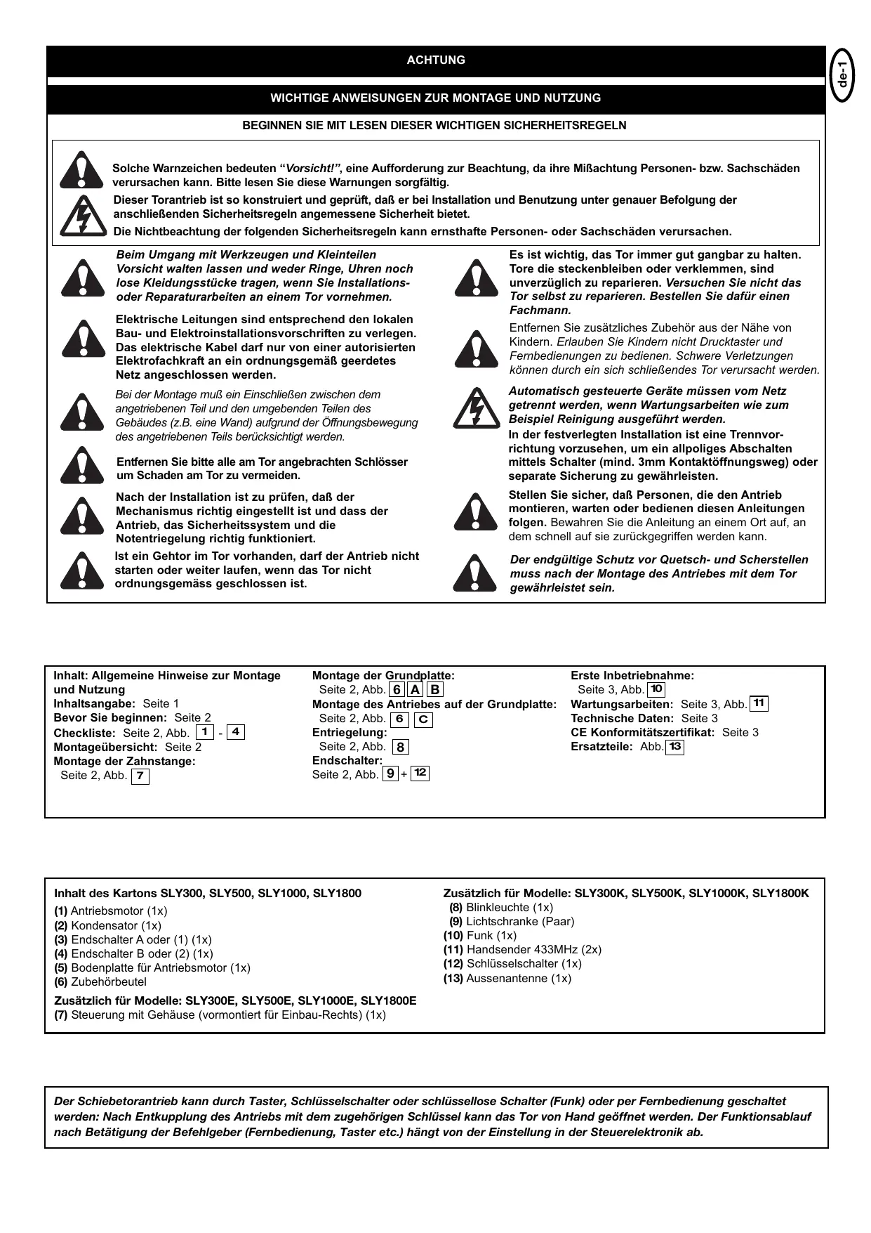 BEDIENUNGSANLEITUNG SLY500 CHAMBERLAIN