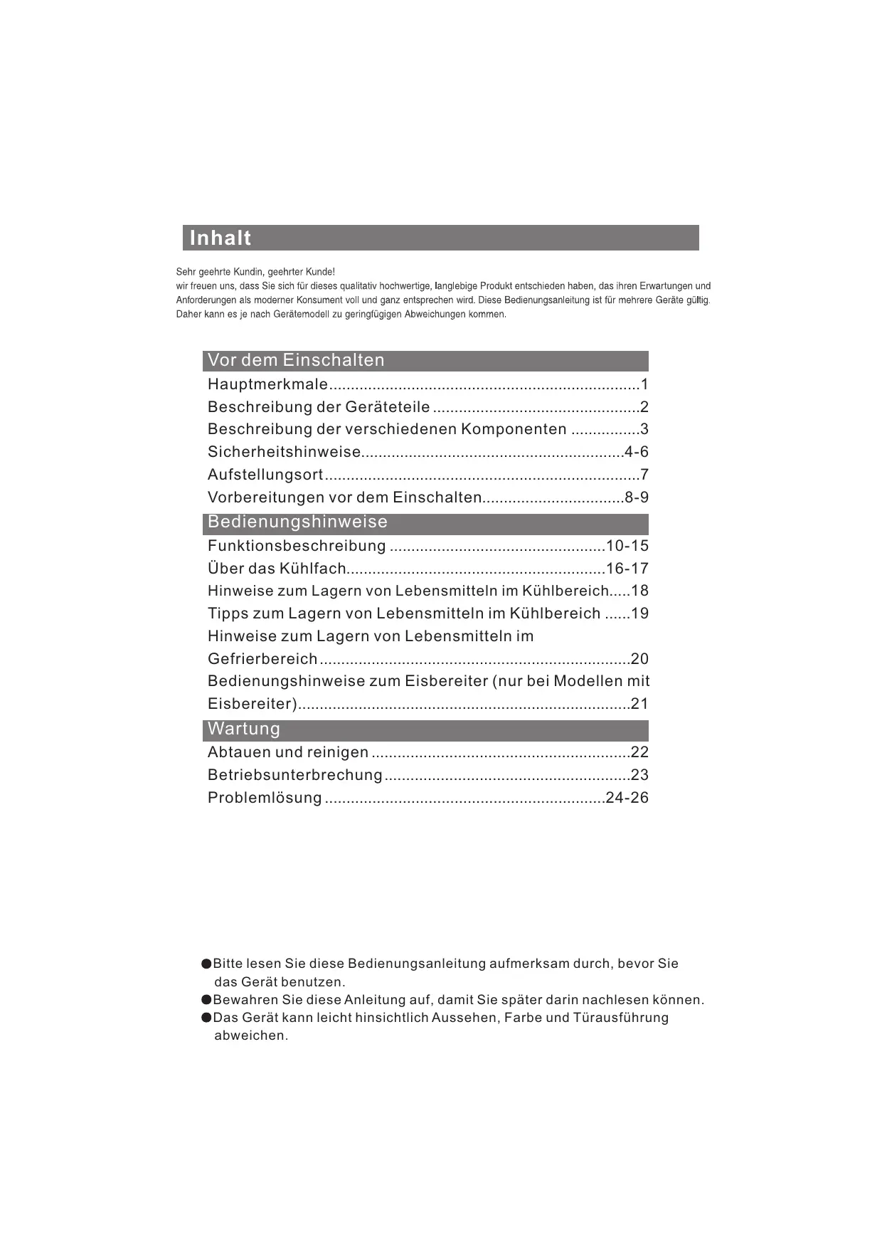 - Inhalt Vor dem Einschalten Hauptmerkmale p. 1