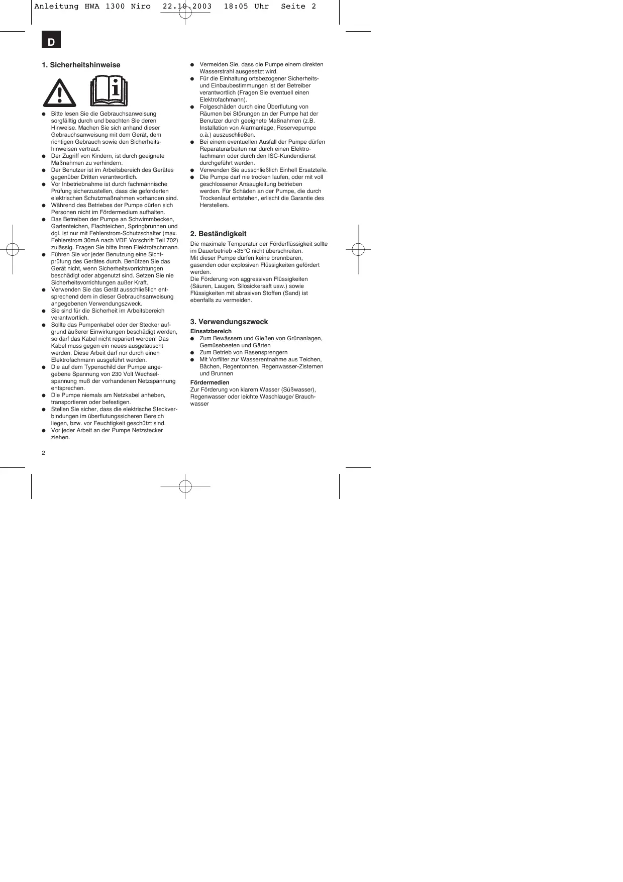 D 1. Sicherheitshinweise