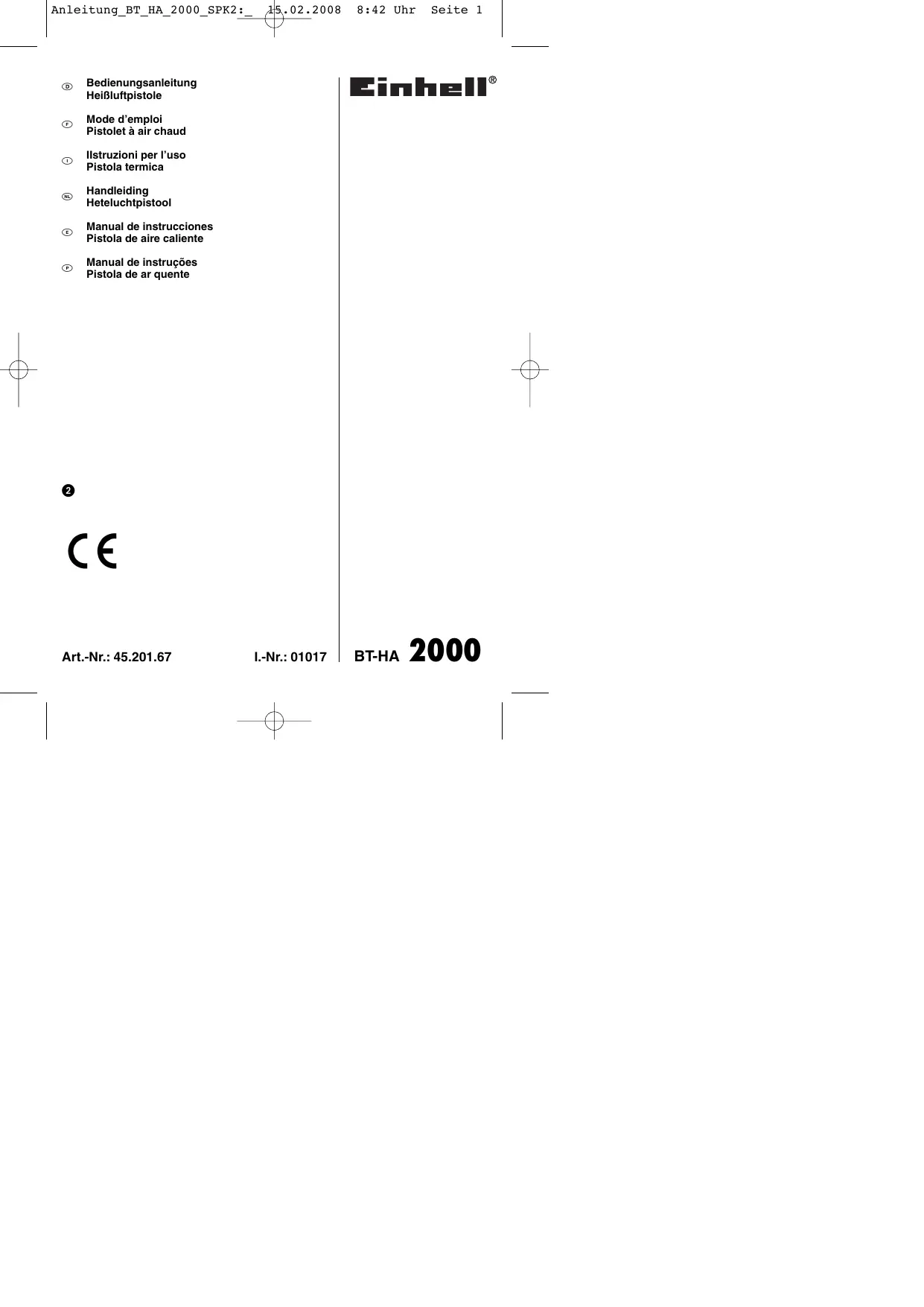 BT-HA 2000 - EINHELL - Kostenlose Bedienungsanleitung