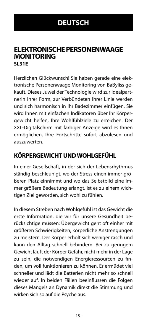 BEDIENUNGSANLEITUNG SL31E BABYLISS
