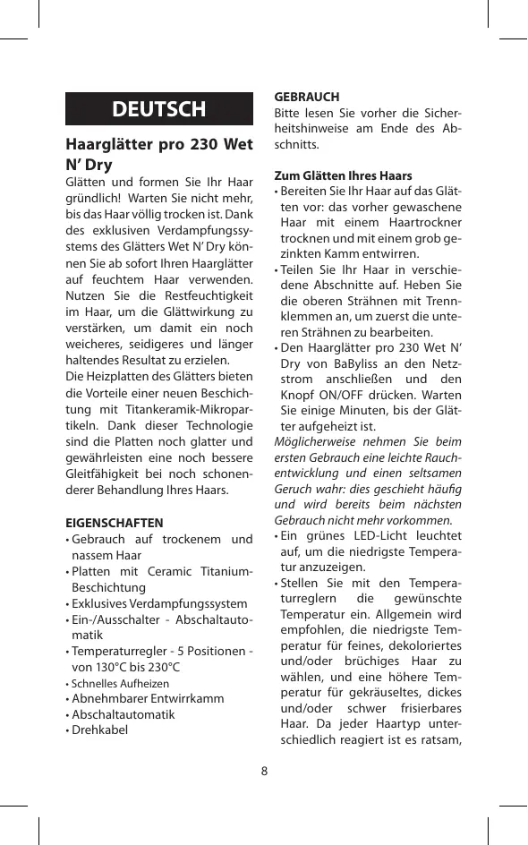BEDIENUNGSANLEITUNG ST30E BABYLISS