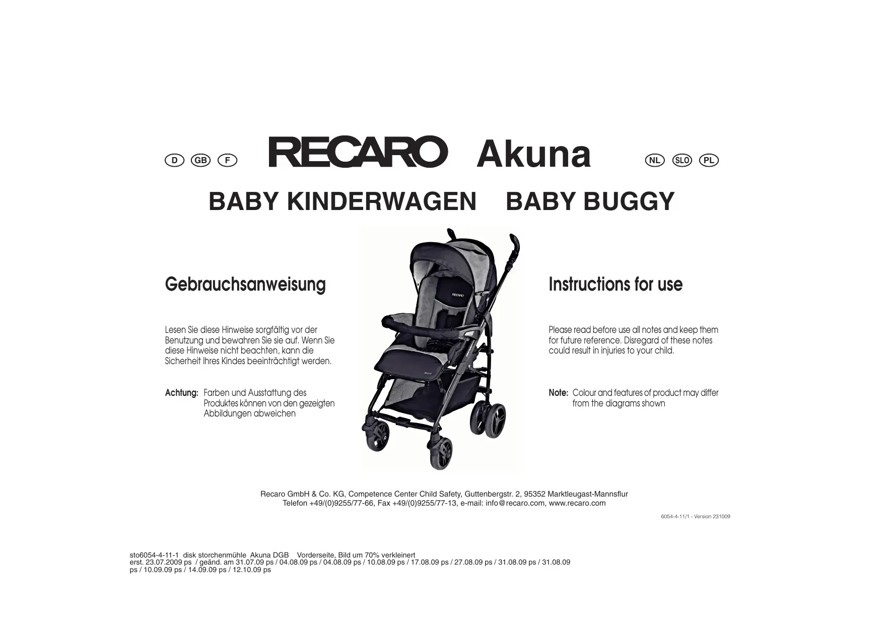 BEDIENUNGSANLEITUNG AKUNA RECARO