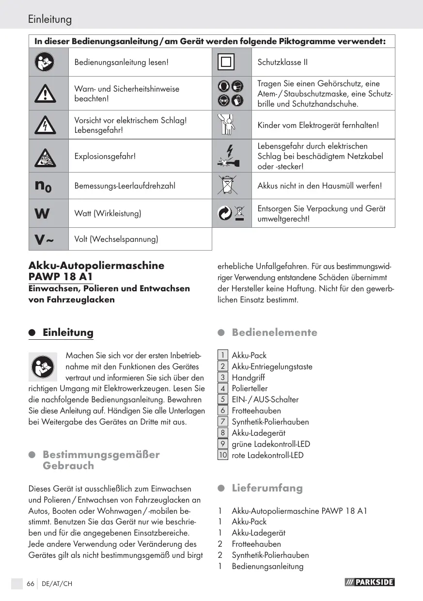 Dieses Gerät ist ausschlieBlich zum Einwachsen und Polieren / Entwachsen von Fahrzeuglacken an Autos, Booten oder Wohnwagen /-mobilen be- stimmt. Benutzen Sie das Gerät nur wie beschrie- ben und für die angegebenen Einsatzbereiche. Jede andere Verwendung oder Veränderung des Gerätes gilt als nicht bestimmungsgemäB und birgt