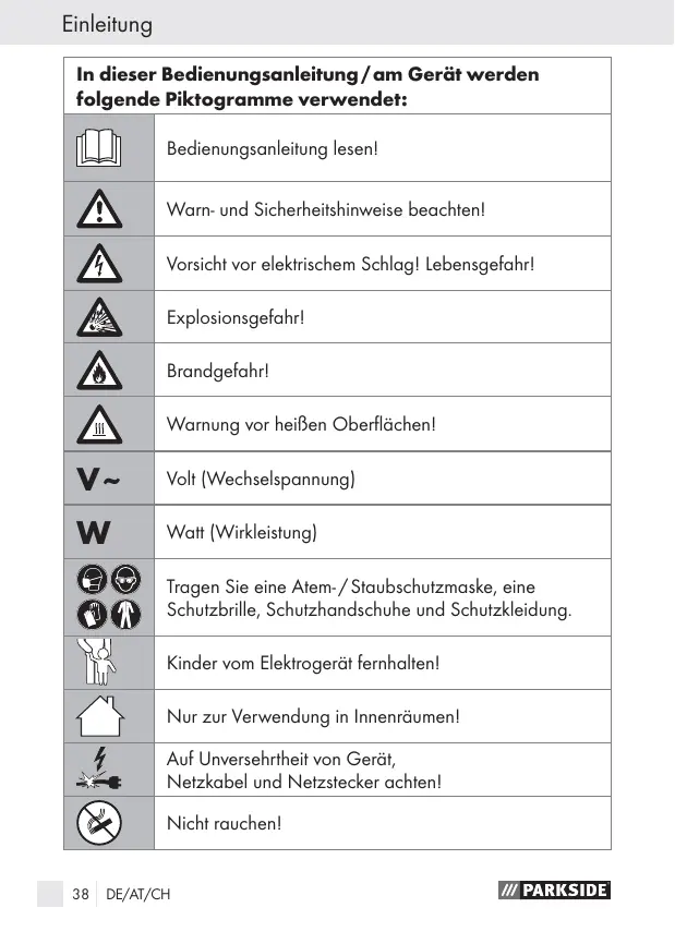 40 DE/AT/CH A PARKSIDE Sicherheitshinweise