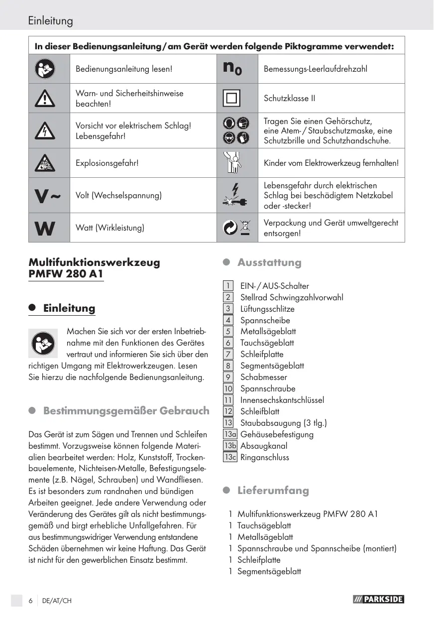 BEDIENUNGSANLEITUNG PMFW 280 A1 MULTI-PURPOSE TOOL PARKSIDE