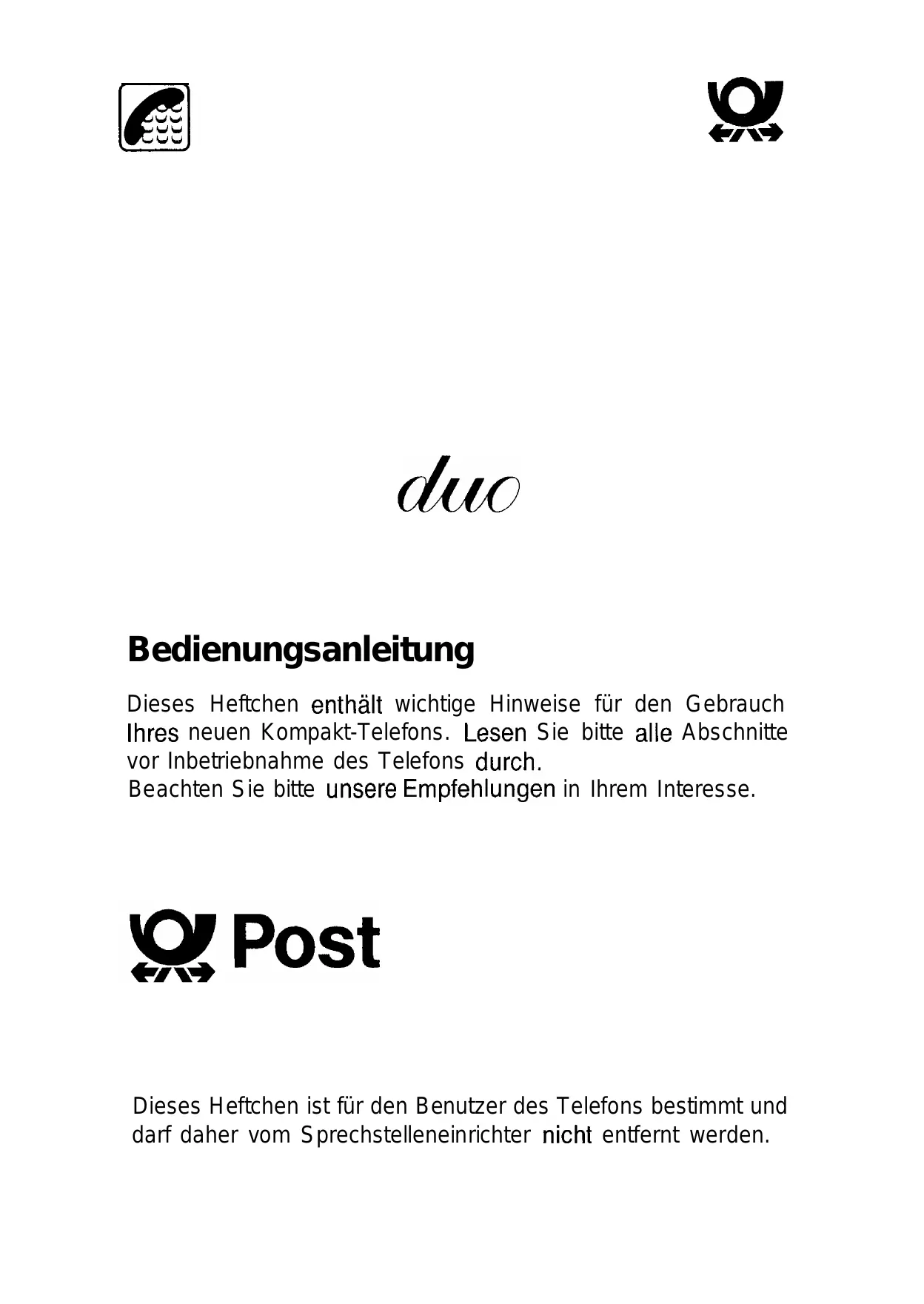 Dieses Heftchen ist für den Benutzer des Telefons bestimmt und darauf beher vom Sprechstelleneinrichter nicht entfernt werden.