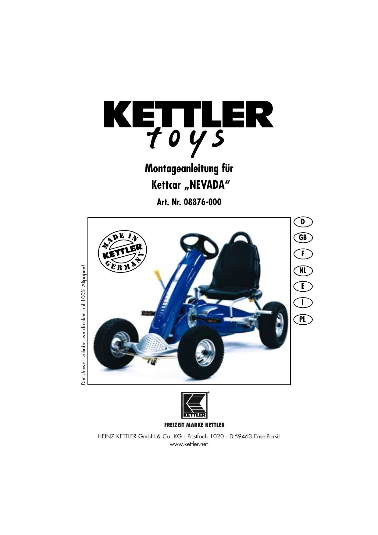 FREIZEIT MARKE KETTLER HEINZ KETTLER GmbH & Co. KG : Postfach 1020 - D-59463 Ense-Parsit www.ketiler.net