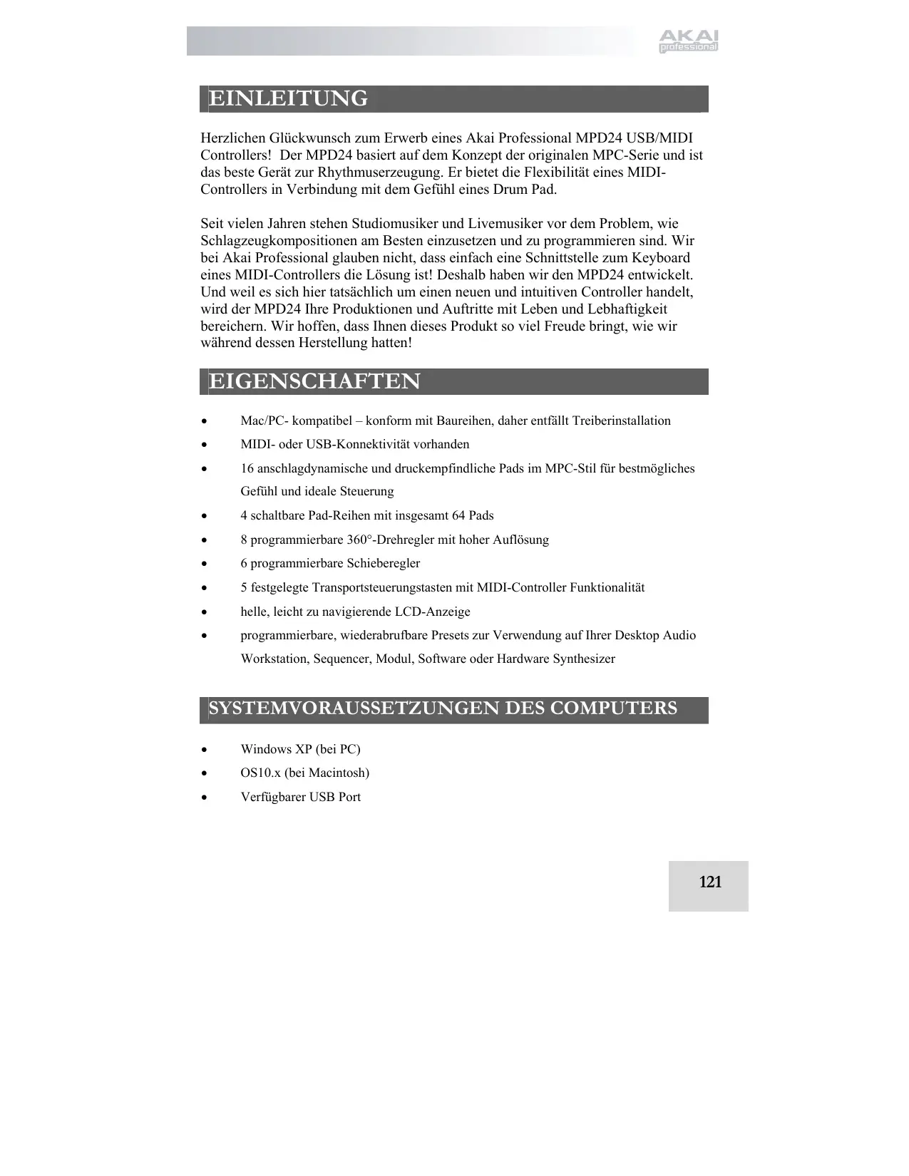 BEDIENUNGSANLEITUNG MPD24 AKAI