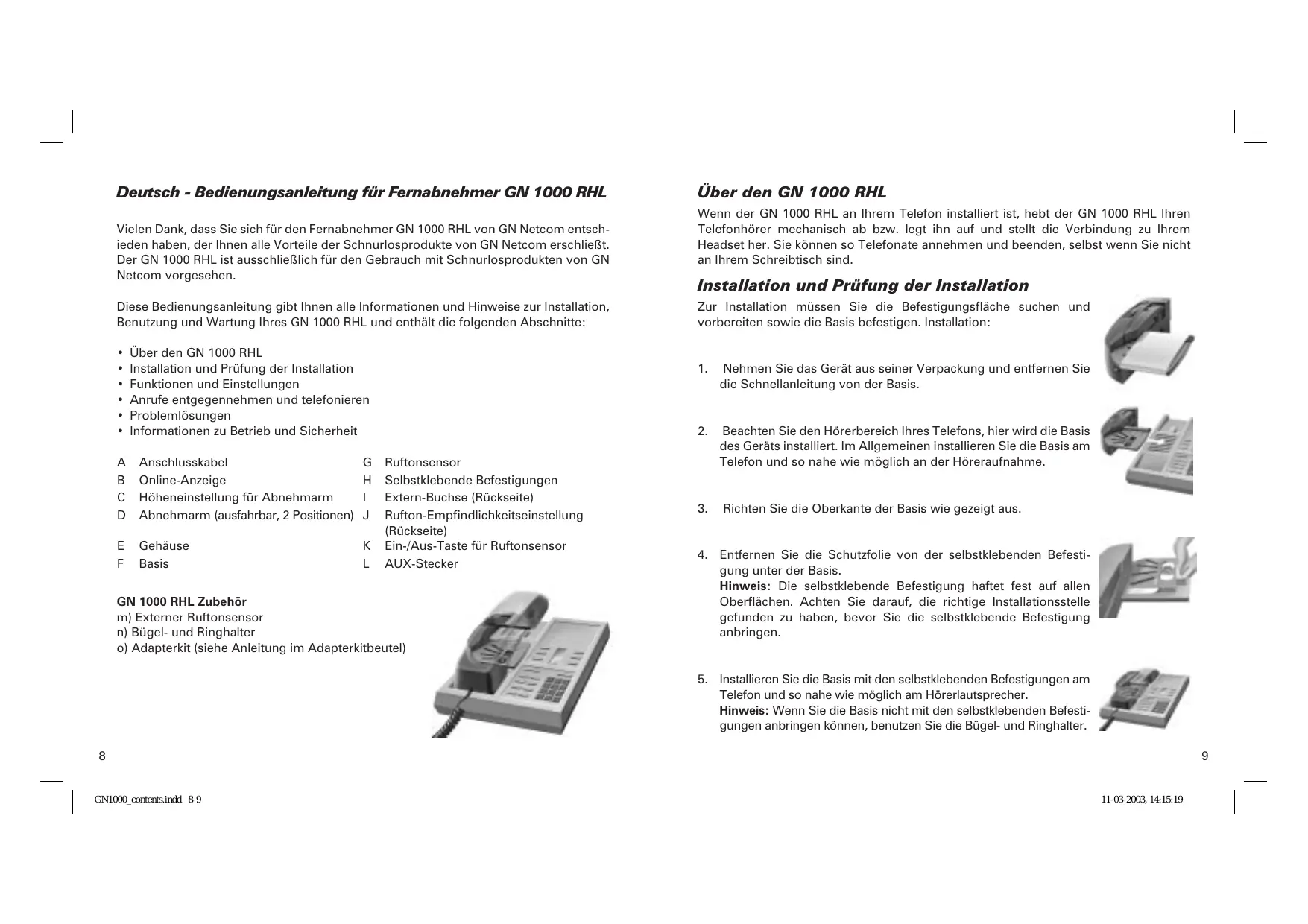 Über den GN 1000 RHL Installation und Prüfung der Installation Funktionen und Einstellungen Anrufe entgegennehmen und telefonieren Problemlösungen Informationen zu Betrieb und Sicherheit