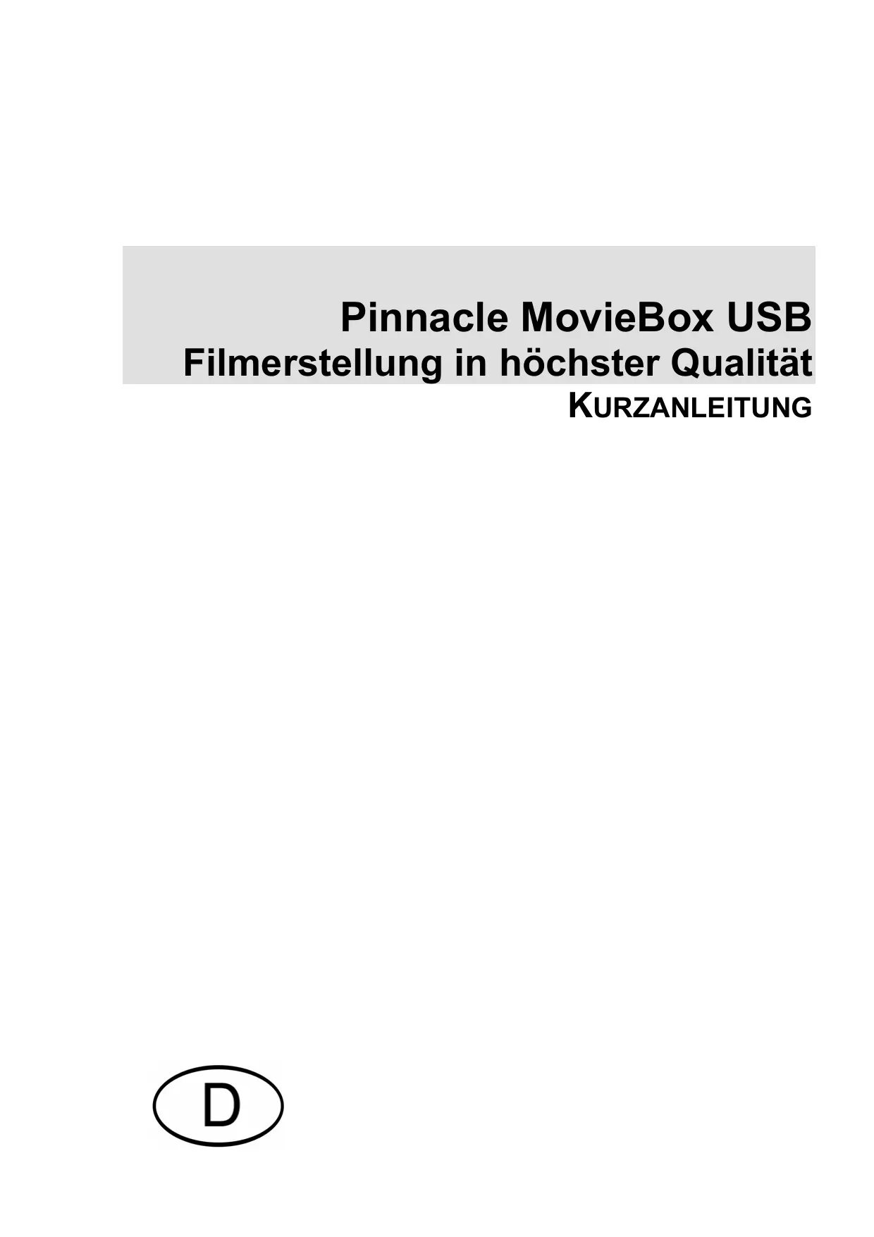 BEDIENUNGSANLEITUNG MOVIEBOX USB PINNACLE