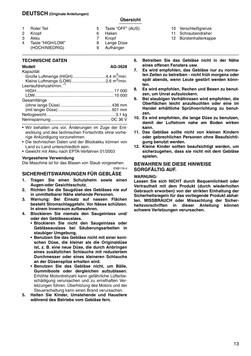 Laden Sie die Anleitung für Ihr Undefiniert kostenlos im PDF-Format! Finden Sie Ihr Handbuch AG-3628 - DOLMAR und nehmen Sie Ihr elektronisches Gerät wieder in die Hand. Auf dieser Seite sind alle Dokumente veröffentlicht, die für die Verwendung Ihres Geräts notwendig sind. AG-3628 von der Marke DOLMAR.