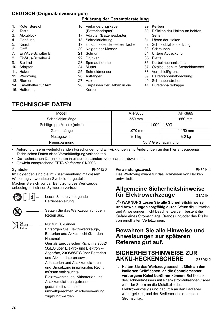 Laden Sie die Anleitung für Ihr kostenlos im PDF-Format! Finden Sie Ihr Handbuch AH-3655 - DOLMAR und nehmen Sie Ihr elektronisches Gerät wieder in die Hand. Auf dieser Seite sind alle Dokumente veröffentlicht, die für die Verwendung Ihres Geräts notwendig sind. AH-3655 von der Marke DOLMAR.