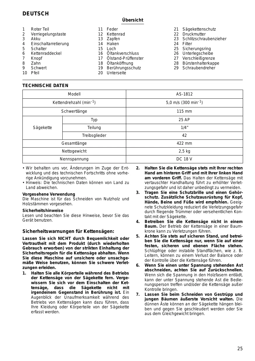 Finden Sie kostenlos die Bedienungsanleitung des Geräts AS-1812 DOLMAR als PDF.
