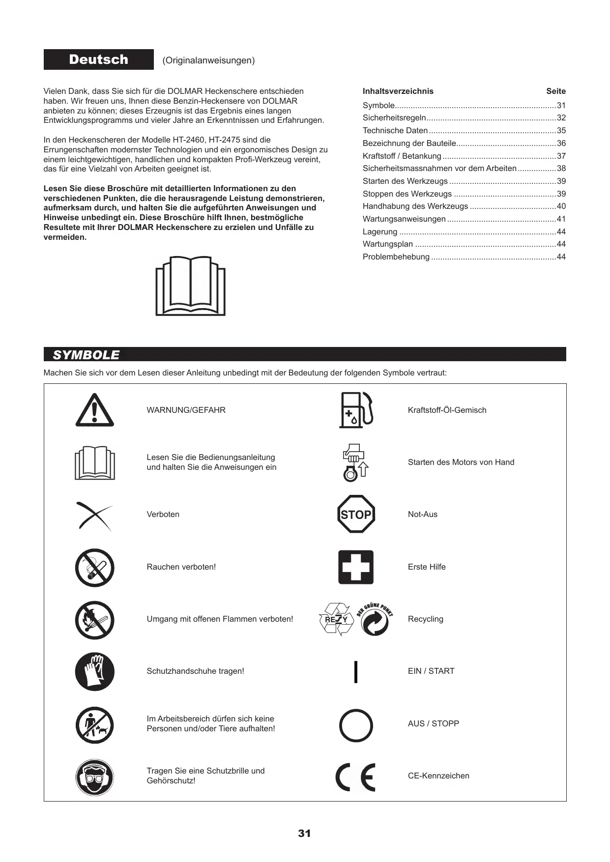 HT-2475 - Heckenscheren DOLMAR - Kostenlose Bedienungsanleitung