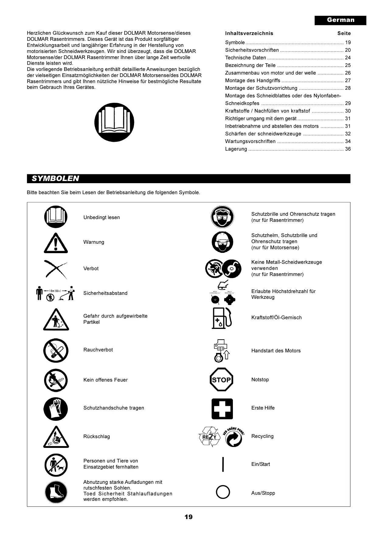 Finden Sie kostenlos die Bedienungsanleitung des Geräts MS-3212 DOLMAR als PDF.
