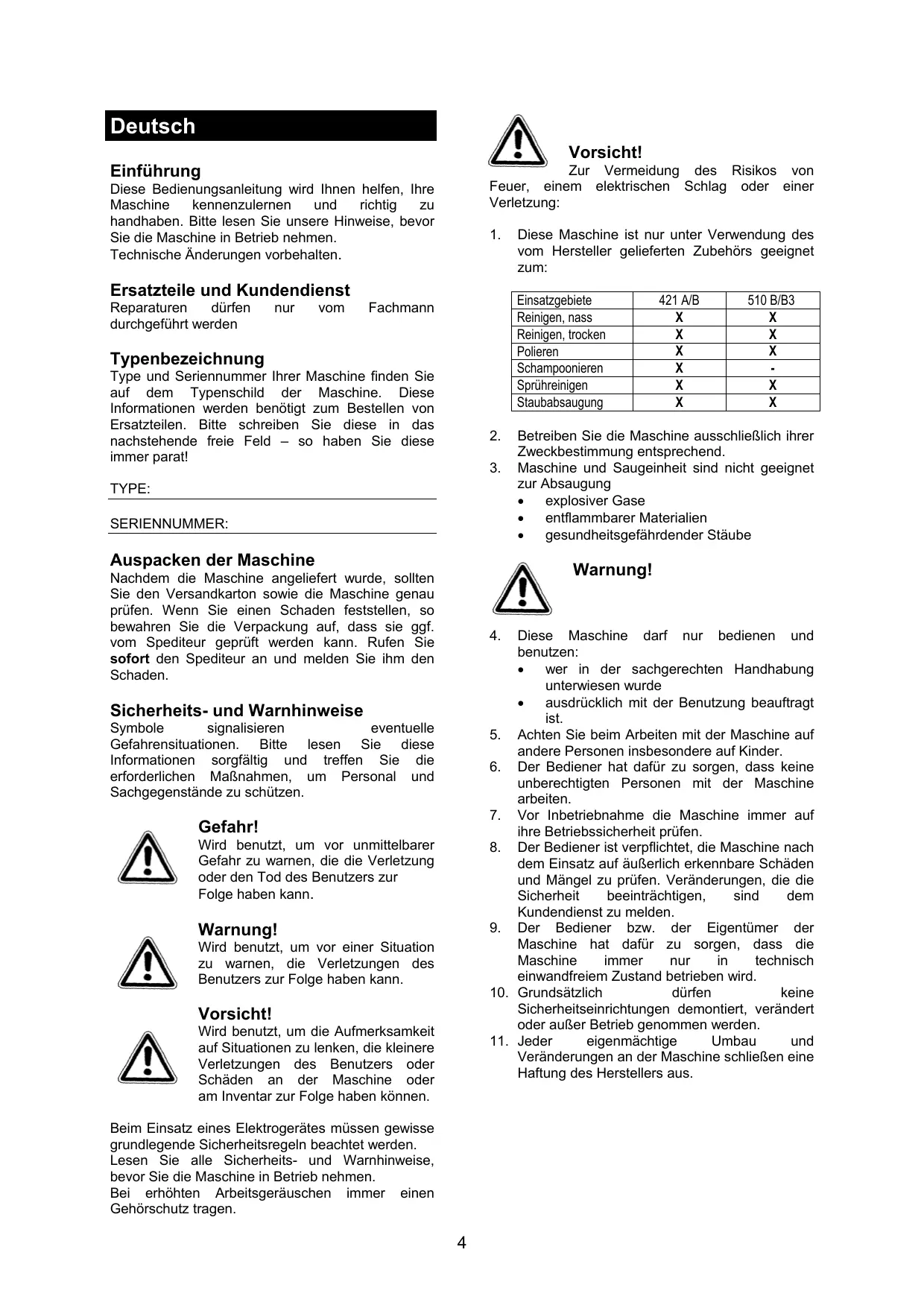 These Bedienungsanleitung wird Ihnen halten, ihre Maschine kennenzulernen und richtig zu handhaben.itte lessen Sie unsere Hinweise,behvor Sie die Maschine in Betrieb besteht. Technische Änderungen vorbehalten.