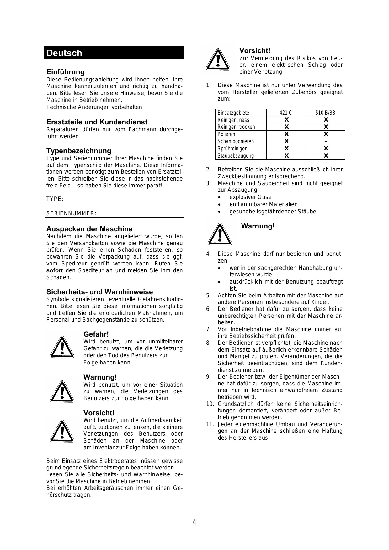 BEDIENUNGSANLEITUNG 421 C-510 B NILFISK