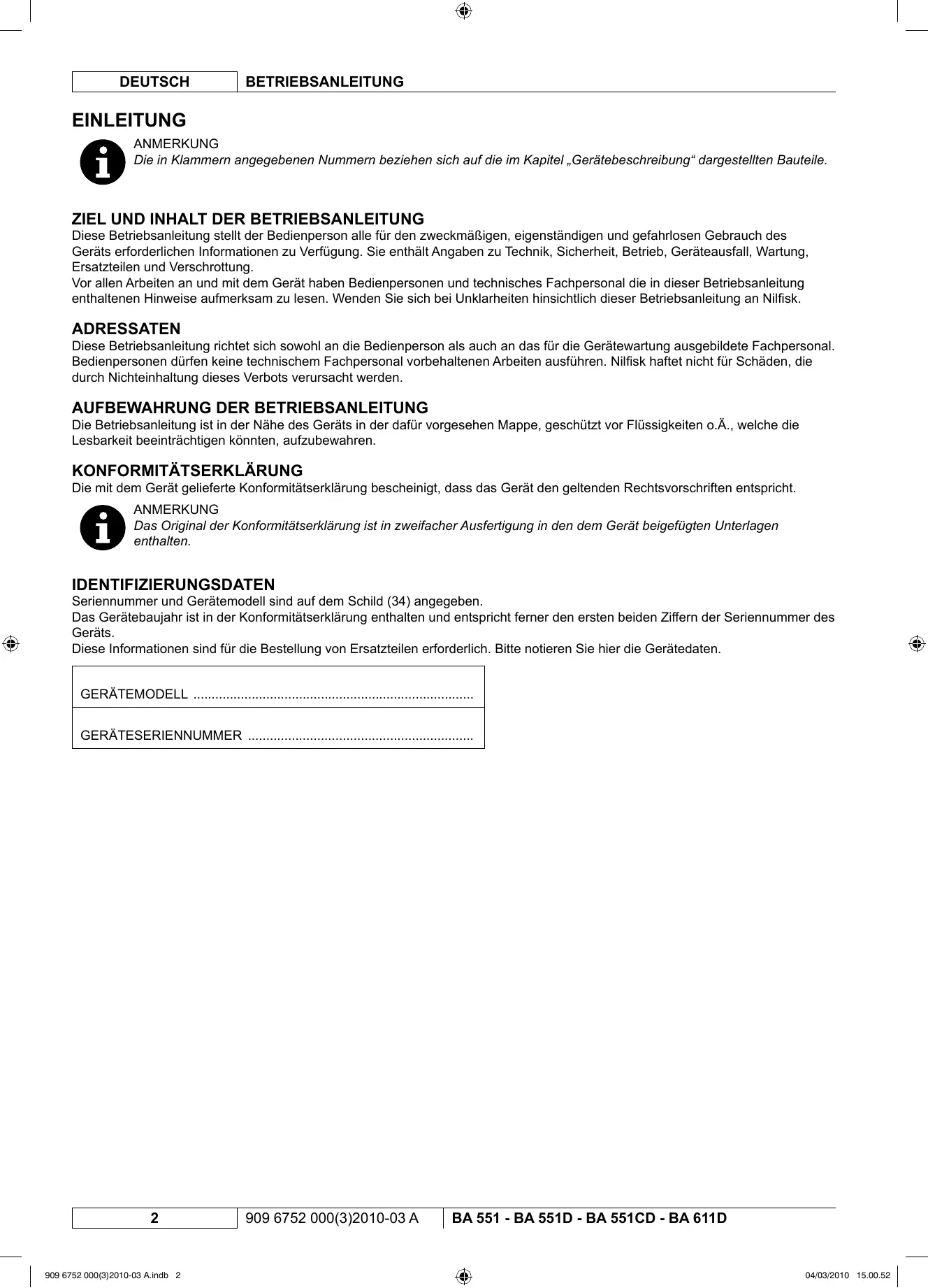 BEDIENUNGSANLEITUNG BA 511D NILFISK