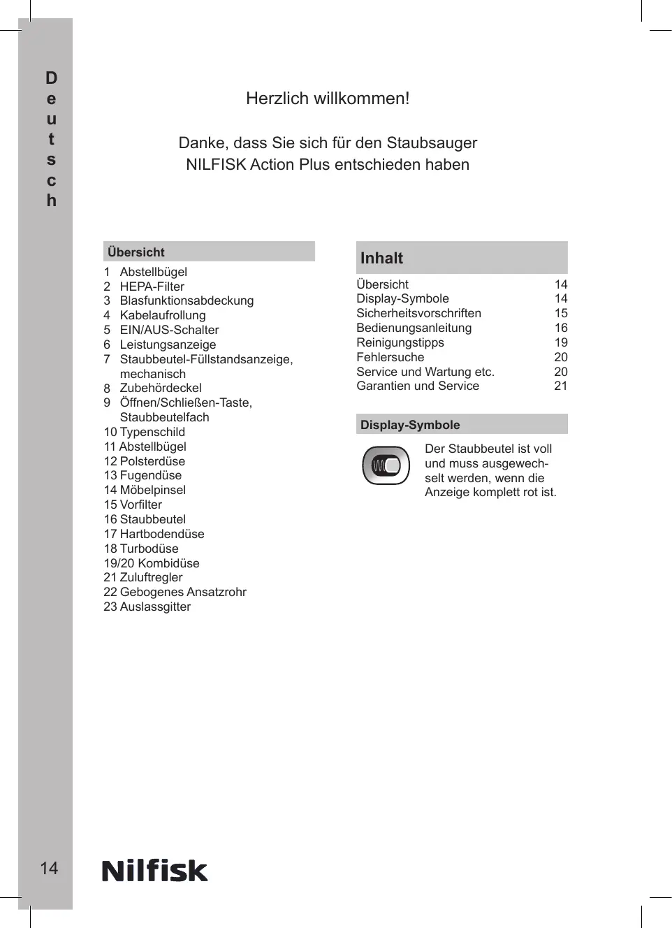 BEDIENUNGSANLEITUNG ACTION PLUS NILFISK