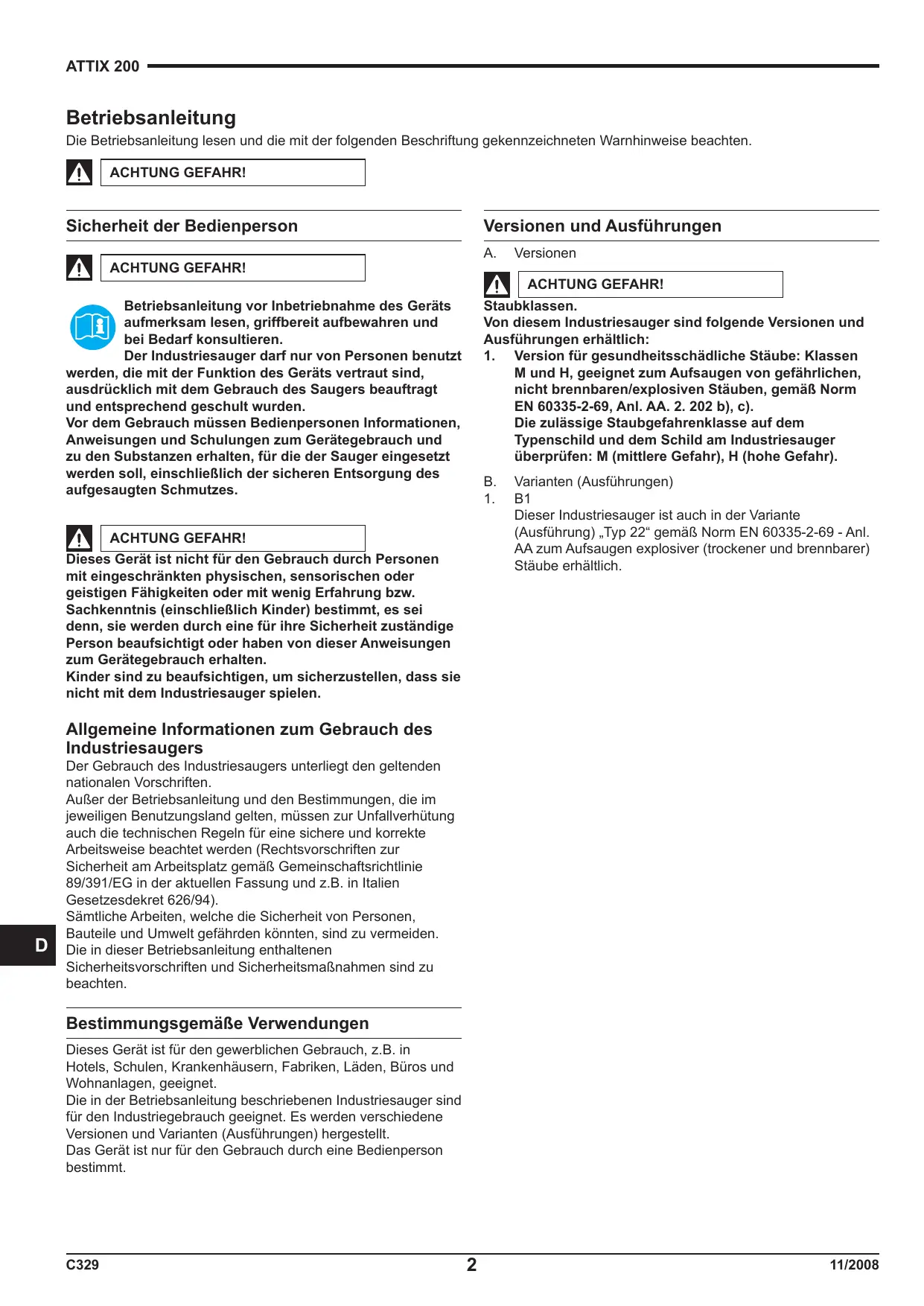 BEDIENUNGSANLEITUNG ATTIX 200 TYPE 22 NILFISK