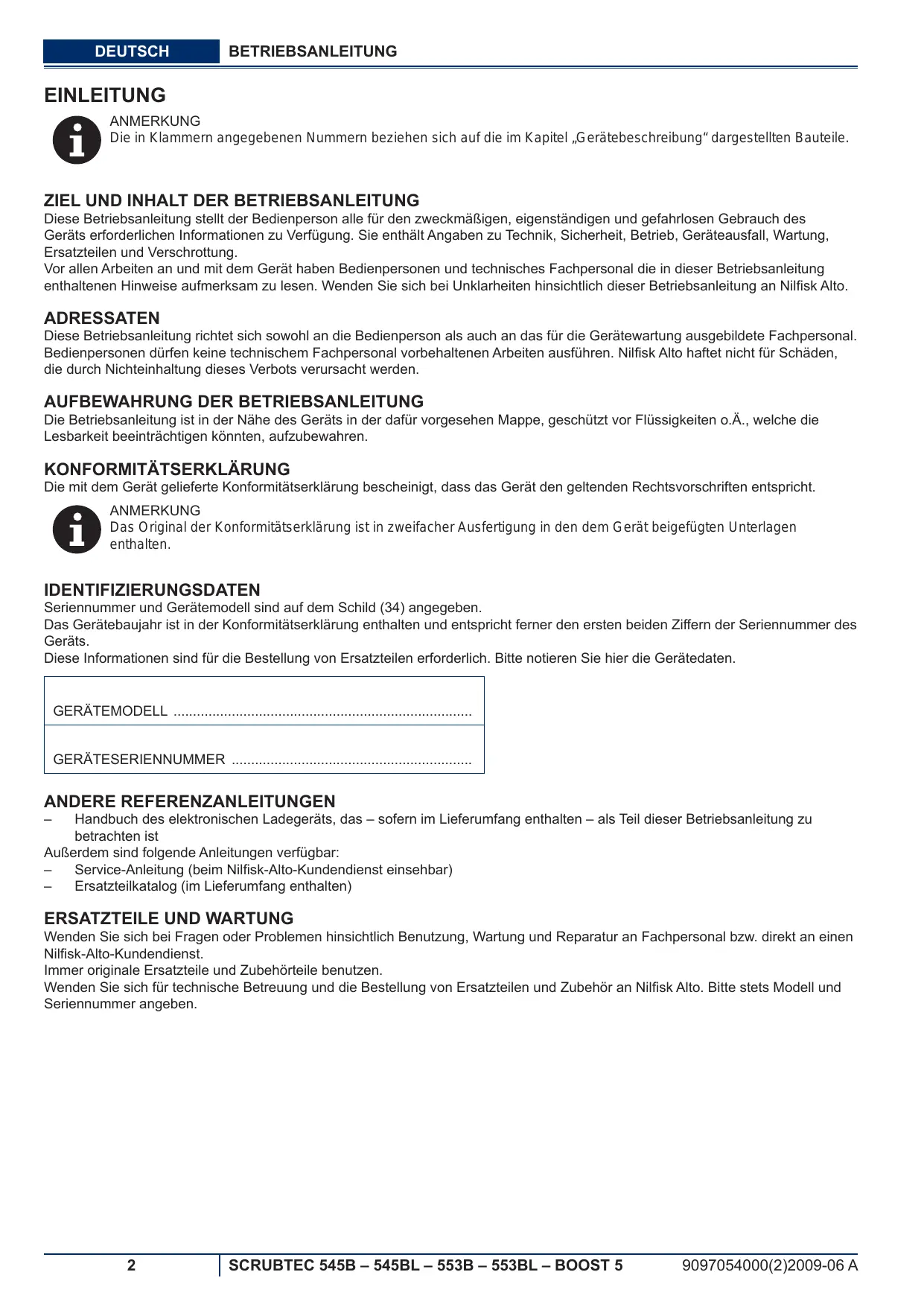 9097054000(2)2009-06 A SCRUBTEC 545B – 545BL – 553B – 553BL – BOOST 5