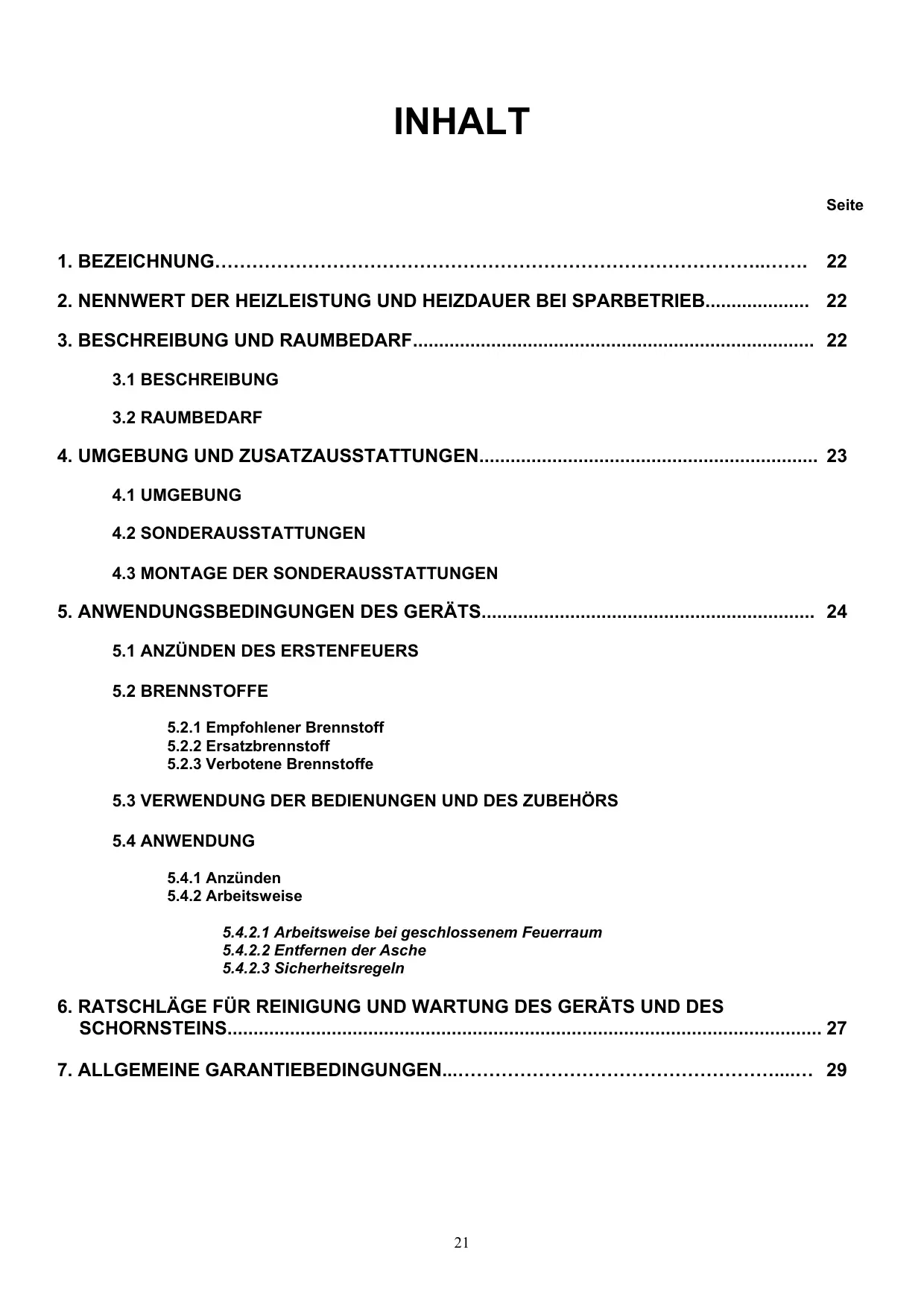 2. NENNWERT DER HEIZLEISTUNG UND HEIZDAUER BEI SPARBETRIEB.................... 22