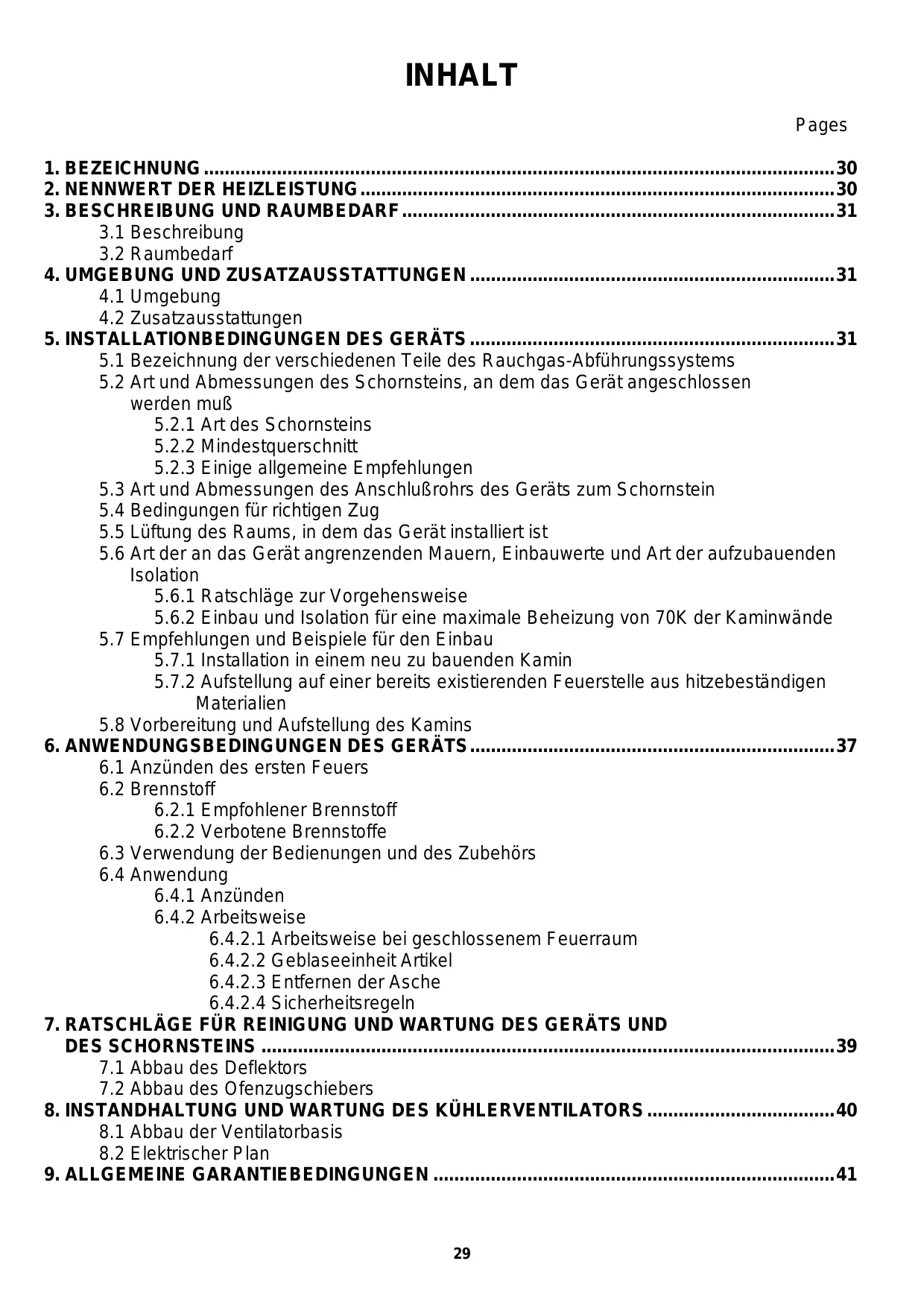9. ALLGEMEINE GARANTIEBEDINGUNGEN .............................................................................41