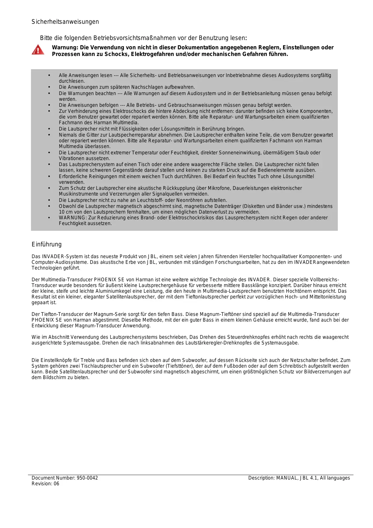 BEDIENUNGSANLEITUNG INVADER JBL