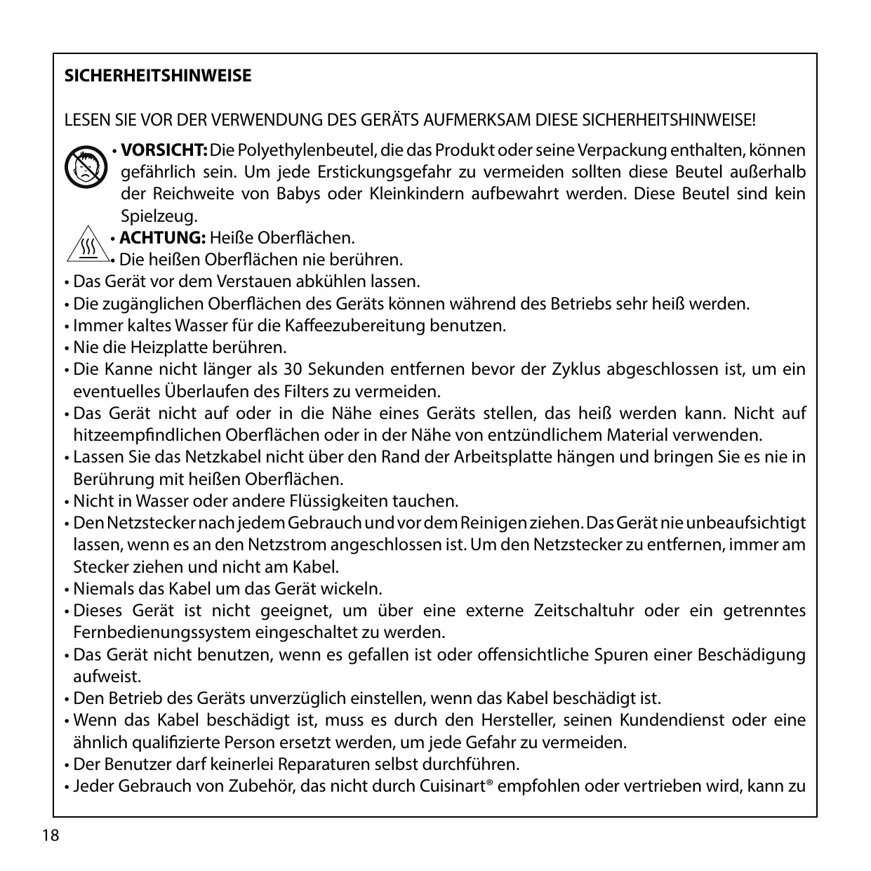 - Jeder Gebrauch von Zubehör, das nicht durch Cuisinart® empfohlen oder vertrieben wird, kann zu