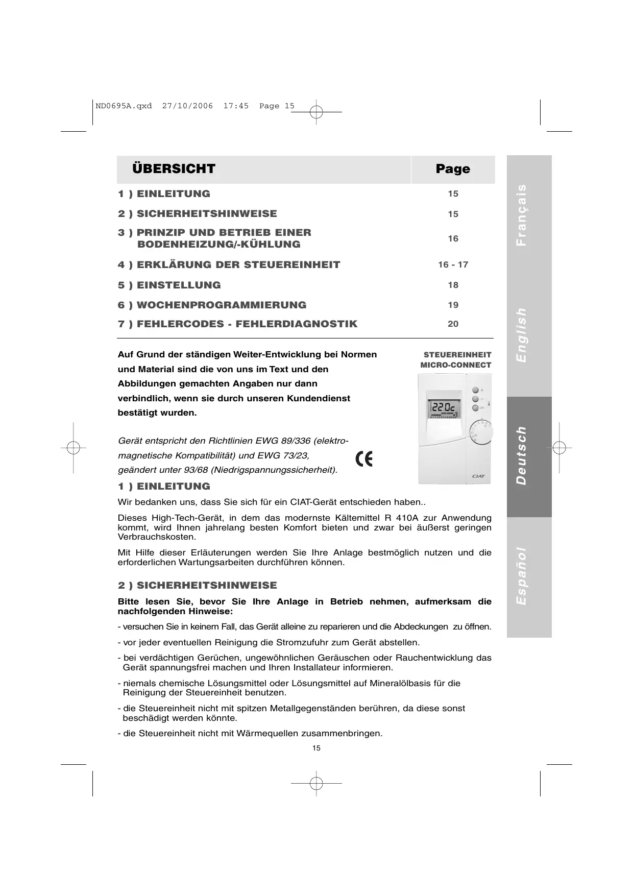 Finden Sie kostenlos die Bedienungsanleitung des Geräts MICRO-CONNECT CIAT als PDF.